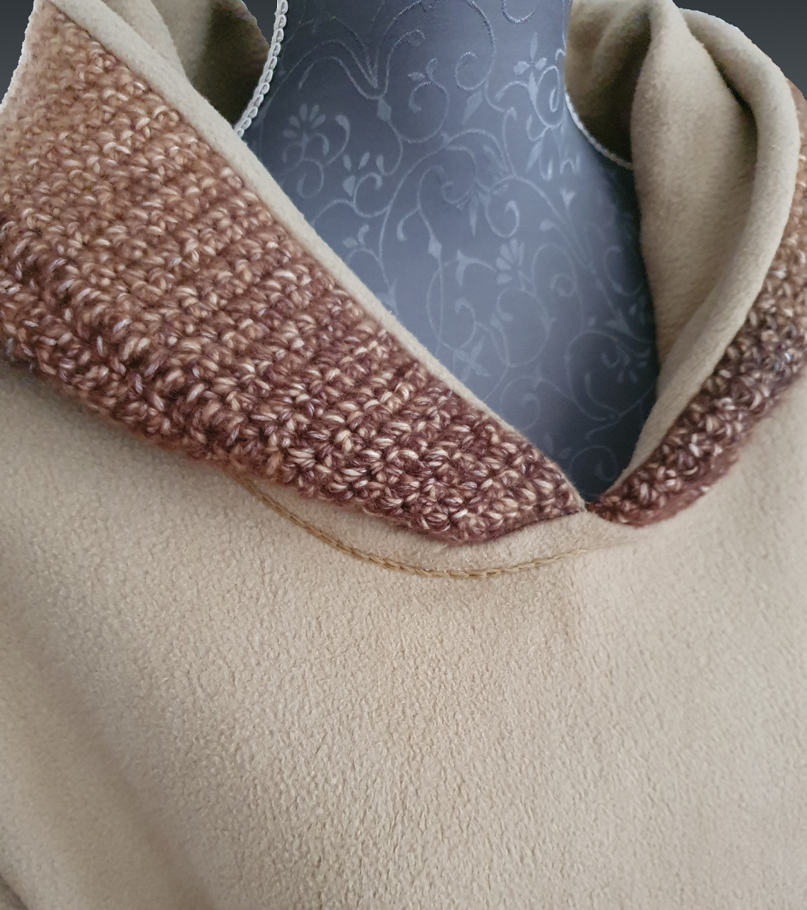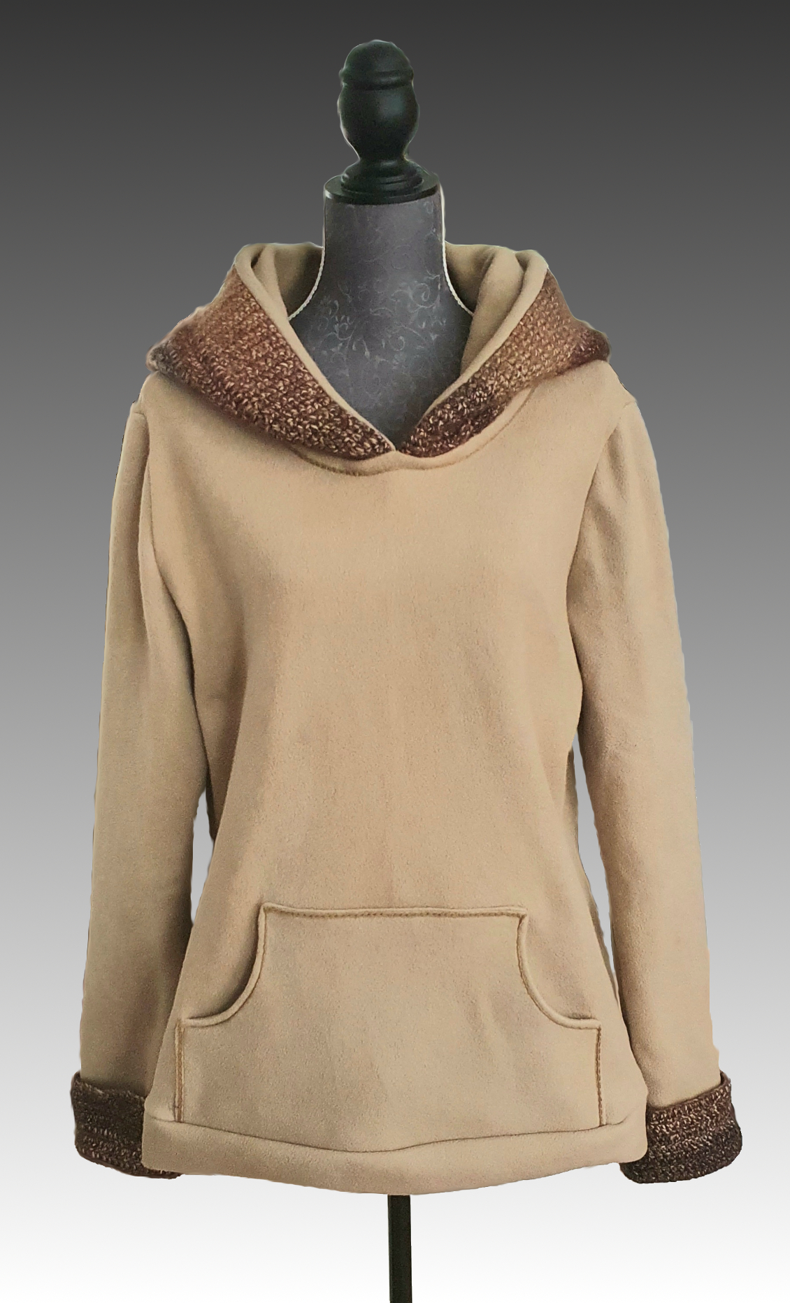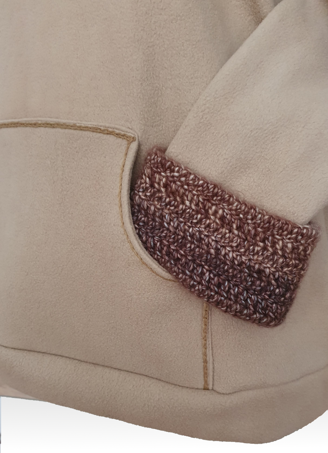 Hoodie aus kuscheligem warmen Baumwollfleece in Sandfarben mit brauner Häkelkapuze
