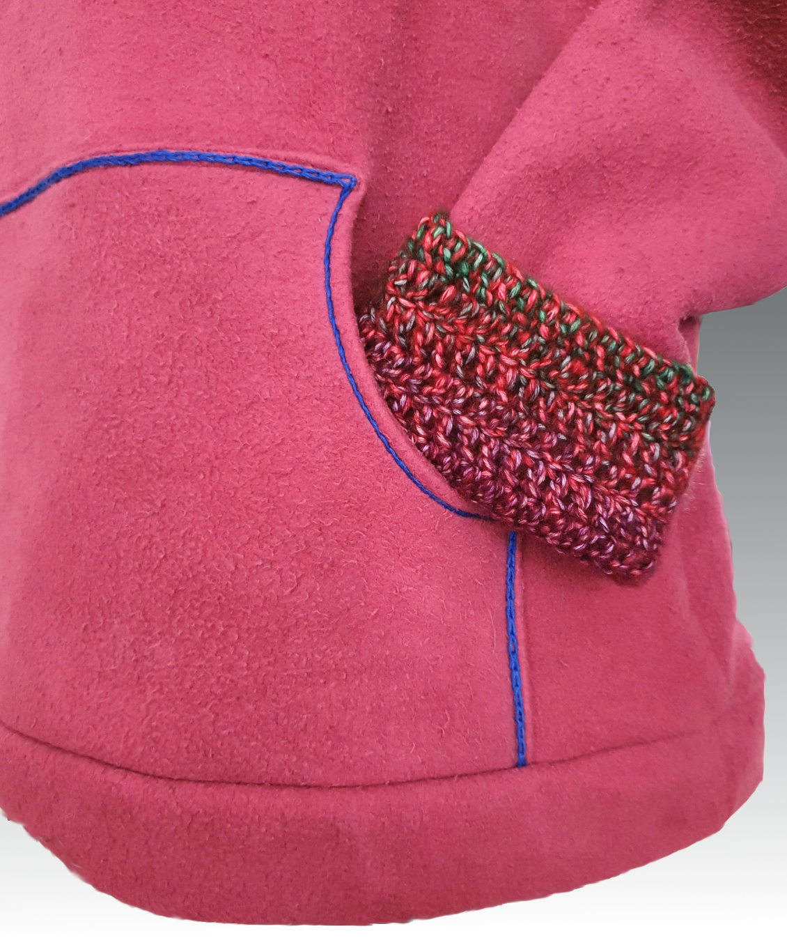 - Häkelarbeiten an Kapuze und Armabschlüssen