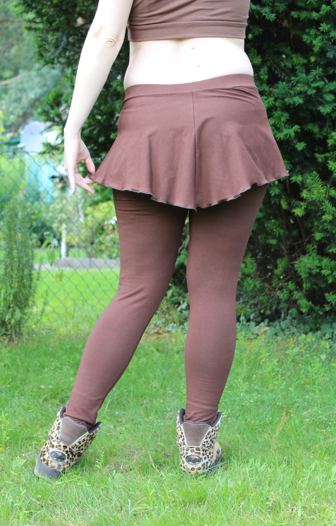 Braune Leggings mit integriertem Röckchen, handgefärbt